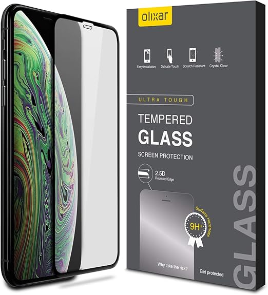 Amazon Com Olixar For Iphone Xs Max Screen Protector Full Coverage Tempered Glass 9h Rated Shock Protection Easy Application Card And Cleaning Cloth Included Black